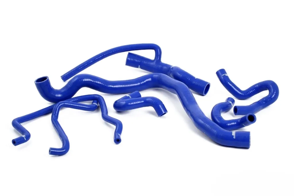 Varje slang är tillverkad av slitstarkt silikon med tre till fem lager textilarmering beroende på innerdiameter. Den robusta konstruktionen ger ökad hållbarhet och motståndskraft mot värme, kylarvätska och åldring. Till skillnad från originalets gummislangar som ofta spricker med tiden, behåller silikonslangarna sin form och flexibilitet under lång användning. Monteras enkelt utan modifiering och passar perfekt i befintligt kylsystem.