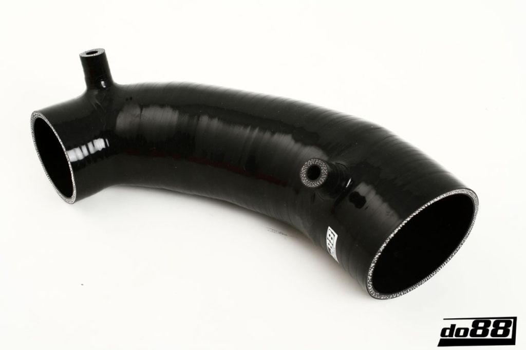 Inloppsslangen är tillverkad i slitstarkt silikon med tre till fem lager textilarmering beroende på dimension och placering. En integrerad stålwire förhindrar att slangen sugs ihop vid höga belastningar. Till skillnad från originalets gummislangar som ofta spricker av ålder och värme, bibehåller denna konstruktion sin form, flexibilitet och täthet över lång tid. Enkel montering utan modifiering och med tydlig passform mot originalkomponenter.