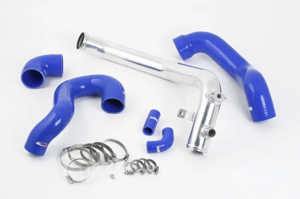 De Blå silikonslangarna är specialdesignade med 4-lagers polyester- och aramidförstärkning som tål höga temperaturer och tryck, vilket gör dem idealiska även för bilar med höjt laddtryck eller chiptrim.