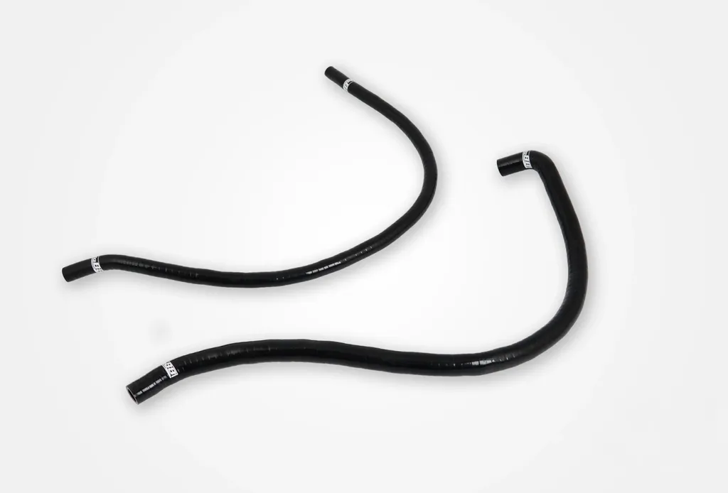 Slangarna är tillverkade i armerat silikon med två lager förstärkning, vilket ger hög trycktålighet och lång livslängd även vid höga temperaturer. Originalets gummislangar blir spröda och kan spricka med tiden – denna uppgradering ger en pålitlig och estetiskt förbättrad lösning. Svart utförande för ett diskret och originalnära utseende. Monteras direkt utan modifiering.
