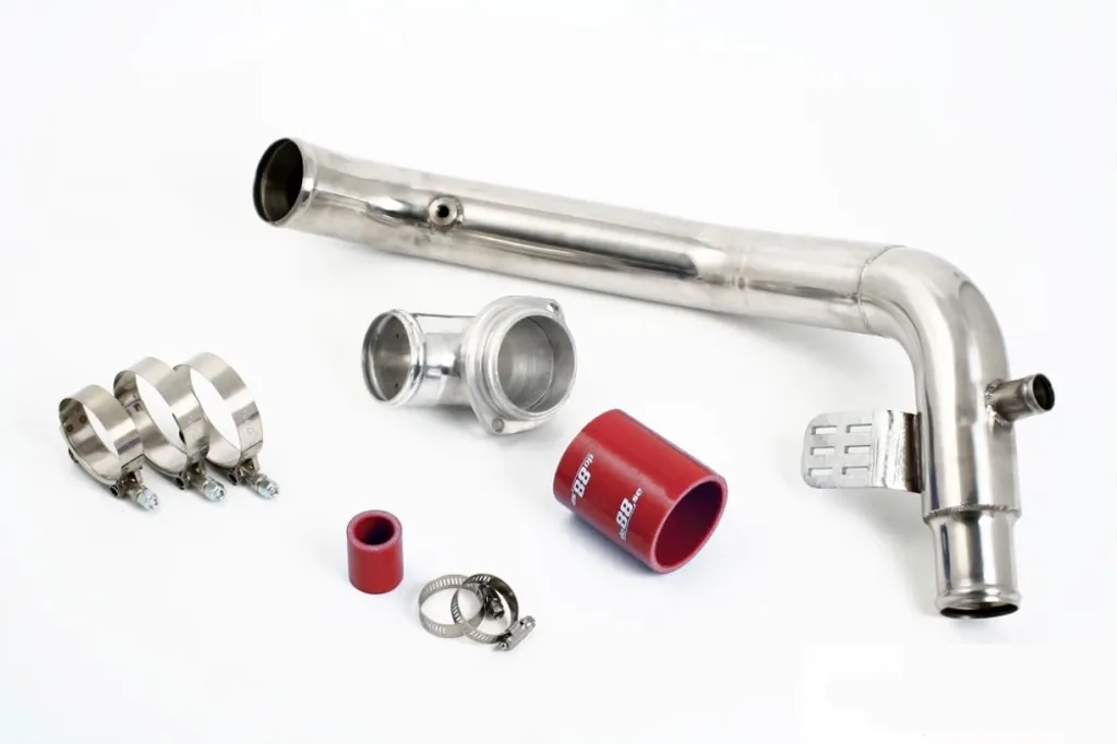 Detta tryckrörspaket är framtaget för dig som vill optimera luftflödet i motorrummet, oavsett om du kör standard eller trimmat. Röret har testats i flödesbänk med betydligt bättre flödeskapacitet än original, vilket ger snabbare laddtrycksrespons och jämnare motorgång. Konstruktionen i 2,5" (63 mm) extruderat aluminium ger styrka och låg vikt, medan de röda silikonslangarna med 4-lagers armering klarar höga temperaturer, tryck och vibrationer.