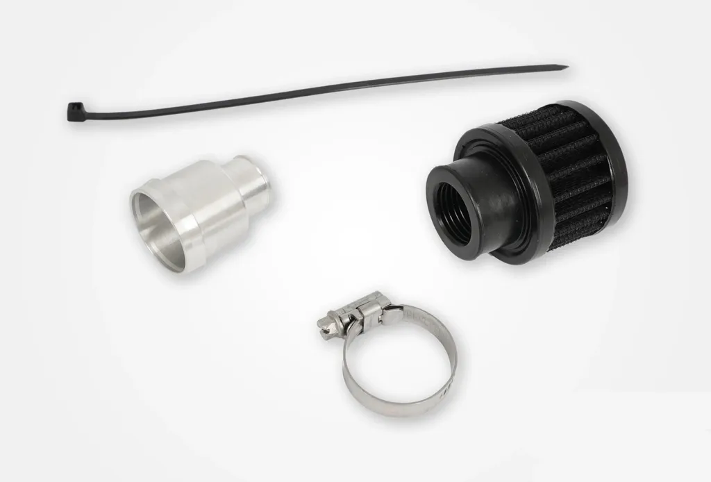SAI-systemet (sekundärluftsystemet) tillför extra luft vid kallstart för att förbättra avgasreningen. När originalinsug tas bort krävs ett separat luftfilter till SAI-slangen för att pumpen ska få filtrerad luft. Det här kompletta kitet innehåller allt du behöver – CNC-bearbetad adapter, luftfilter och buntband – för en smidig installation utan permanenta modifieringar. Kan enkelt återställas till originalutförande vid behov.