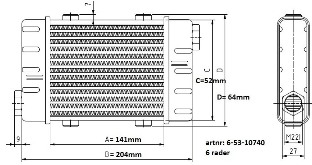 Setrab Oljekylare Slimline 10740 – 6 Rader, Längd 141 mm