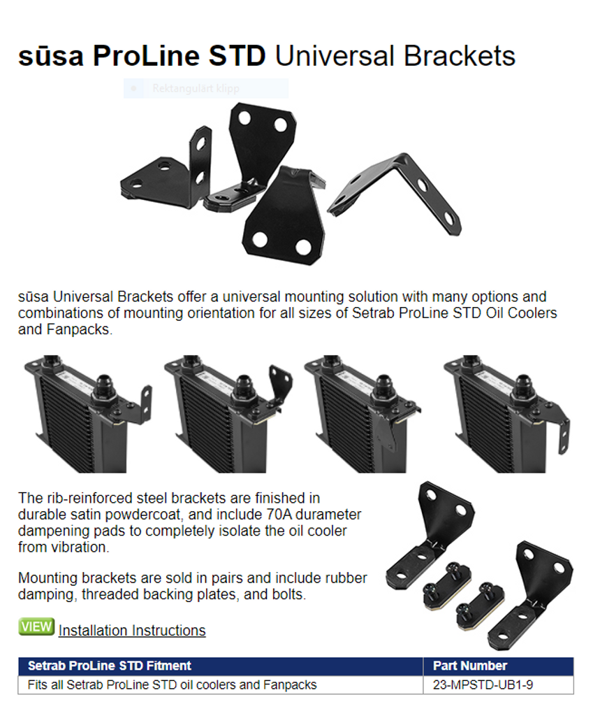 Setrab ProLine STD Oljekylarmonteringsfästen