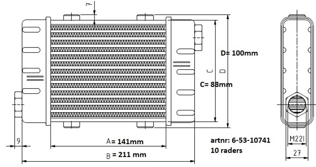setrab slimline 10741, slimline oil cooler, 10 row oil cooler, compact oil cooler, short length oil cooler, m22 oil cooler, motorcycle oil cooler, performance cooling system