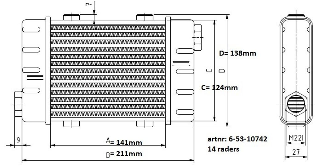 setrab slimline 10742, slimline oil cooler, 14 row oil cooler, compact oil cooler, short length oil cooler, m22 oil cooler, motorcycle oil cooler, performance cooling system