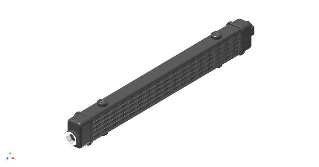 Denna modell är konstruerad för applikationer där installationsutrymmet är begränsat men där gott om kylkapacitet behövs. Den svart epoxy-lackerade aluminiumkonstruktionen ger låg vikt, god korrosionsresistens och lång livslängd även vid krävande drift. Med en cellpaketslängd på 420 mm och Slimline-profil är den enkel att placera i växellådor, bakaxlar, mindre motorer och transmissioner.