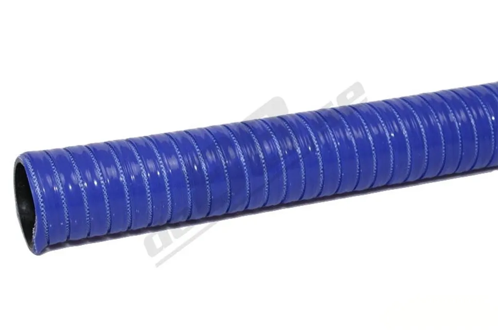 Flexibel silikonslang i Blå färg med invävd stålspiral för överlägsen böjbarhet, hållbarhet och trycktålighet. En mångsidig slang som fungerar utmärkt som kylarslang, värmepaketslang eller universell koppling där extra flexibilitet krävs.