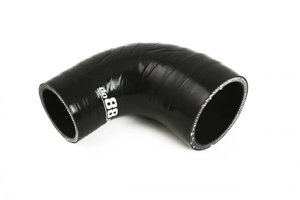Slangen är tillverkad i förstklassigt silikon med tre till fem lager textilarmering, beroende på innerdiameter. Den robusta konstruktionen ger bibehållen form även vid högt laddtryck och långvarig värmeexponering. Originalslangar i gummi spricker ofta med tiden på grund av uttorkning – denna silikonslang eliminerar problemet och ger samtidigt ett snyggare motorutrymme. Färgval påverkar inte prestandan, men möjliggör estetisk anpassning. För korrekt installation rekommenderas matchande slangklämmor under fliken Tillbehör.