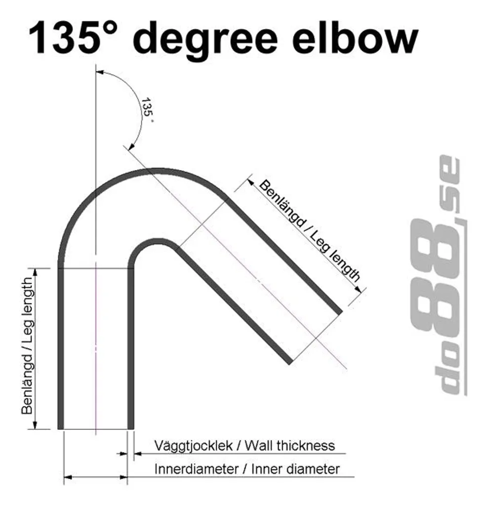 - 135-graders böj med innerdiameter 2’’ (51 mm)