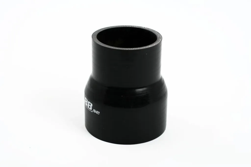 Rak reducering i svart armerad silikon för sammankoppling av rör med olika dimensioner. Perfekt för användning i tryckapplikationer som turbo och intercooler, samt i sug- och kylsystem där hög temperatur- och trycktålighet krävs.