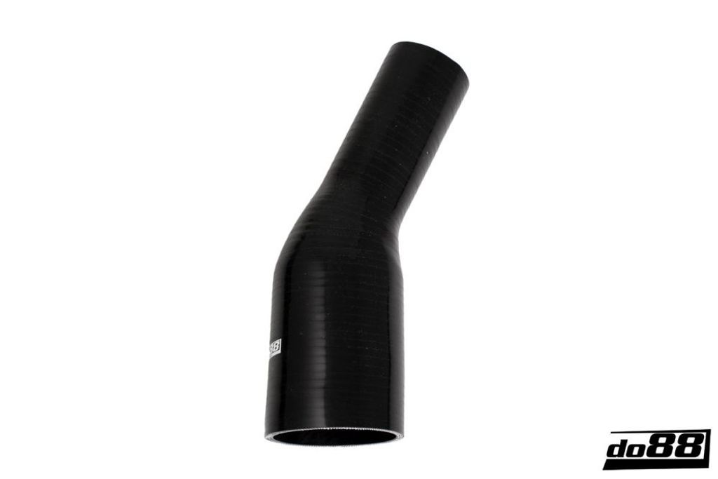 Silikonslang i Svart utförande med 25° böj för både tryck- och sugapplikationer. Den används vanligtvis mellan turbo, intercooler, luftfilter och insug där en mindre vinkel behövs för optimal montering. Konstruktionen tål höga temperaturer och tryck utan att deformeras.