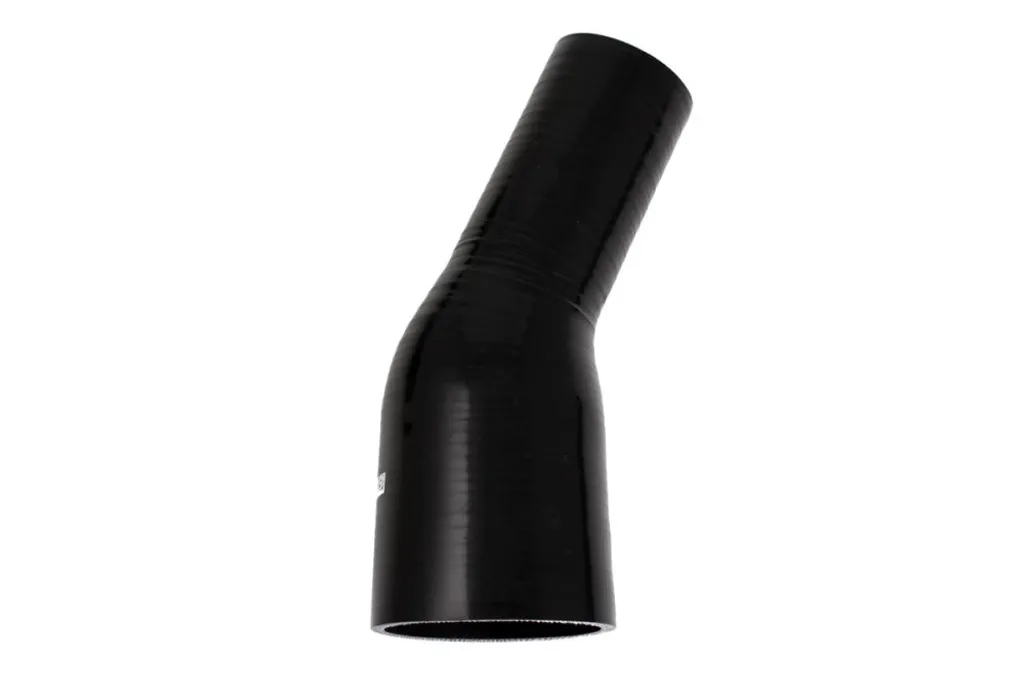 Silikonslang i 25° böj med stegrad diameter från 3" till 3,125" (76–80 mm). Tillverkad i flerskiktsarmerad silikon med hög tryck- och temperaturtålighet för krävande applikationer. Perfekt för trycksystem, intercooler, turbo- och kylsystem där hållbarhet, flöde och exakt passform är viktigt.