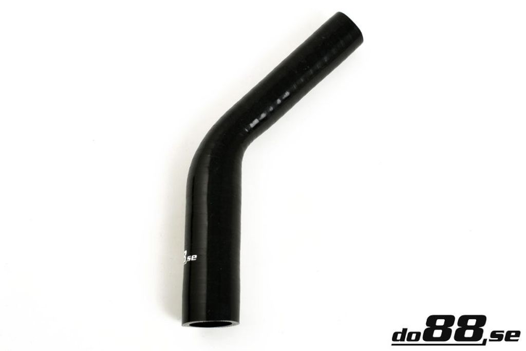 silikonslang 45 grader, stegrad silikonslang, silikonslang svart, intercoolerslang, turboslang 13–16 mm, slang 0,5–0,625 tum