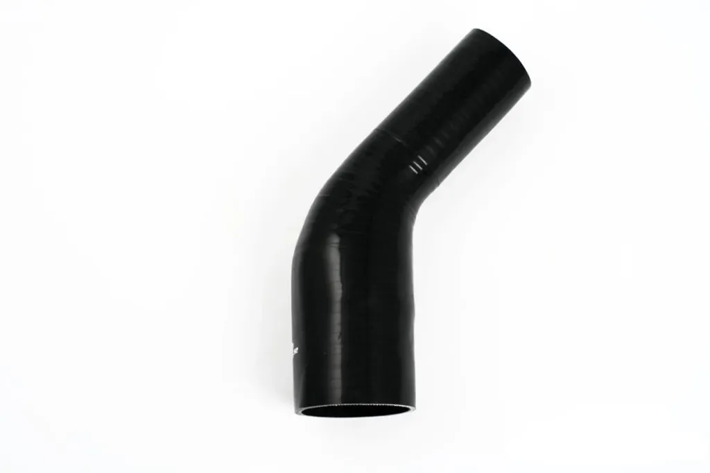 Silikonslang i Svart utförande med 45° böj, framtagen för både tryck- och sugapplikationer. Den används ofta mellan turbo, intercooler, luftfilter och insug där en smidig vinkel krävs för korrekt montering. Slangen klarar höga temperaturer och tryck och bibehåller sin form även vid krävande driftförhållanden.