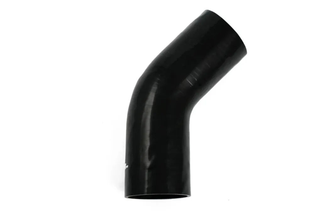 Silikonslang i Svart utförande med 45° böj, avsedd för stora tryck- och sugapplikationer. Den används i prestandasystem mellan turbo, intercooler, luftfilter och insug där en mjuk vinkel krävs för korrekt passform. Slangen klarar mycket höga temperaturer och tryck, vilket gör den idealisk för både racing, industri och tunga fordon.