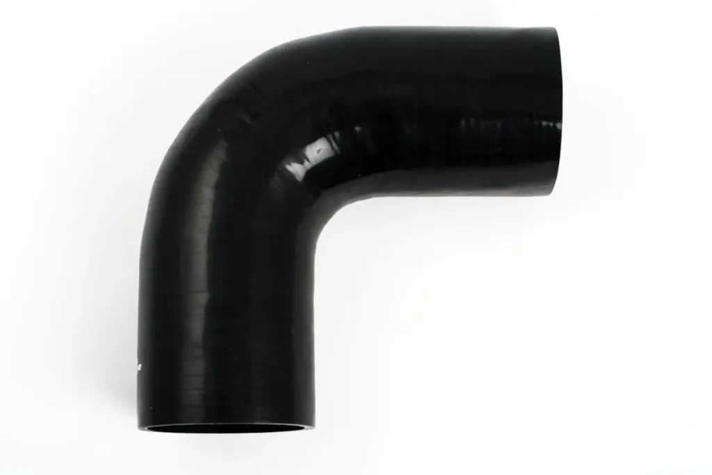Silikonslang i Svart utförande med 90° böj, framtagen för större tryck- och sugapplikationer. Den används ofta i kraftfulla system mellan turbo, intercooler, luftfilter och insug där en skarp vinkel krävs för korrekt montering. Slangen är konstruerad för att klara mycket höga temperaturer och tryck och behåller sin form även under tuffa driftförhållanden.