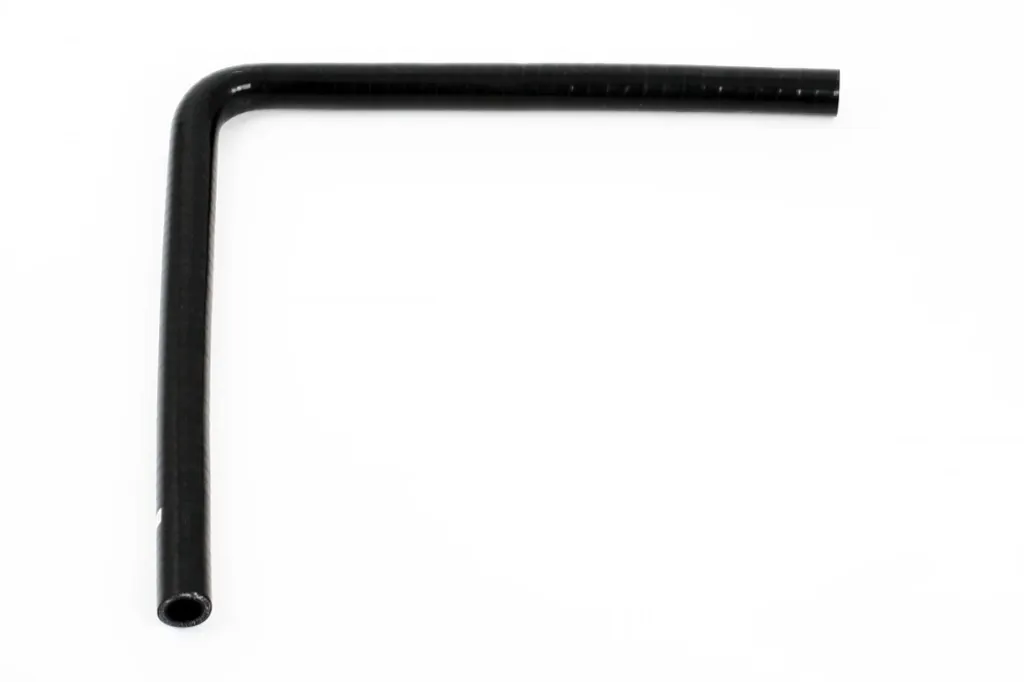 Silikonslang Svart 90 grader långt ben 0,5" (13mm) är en kompakt och slitstark silikonslang med 90-graders böj och extra långa ben på 300 mm. Den används i tryck- och sugapplikationer såsom turbo, intercooler, kompressor, luftfilter och insug samt i kylsystem och värmepaket där längre slangdragningar behövs.