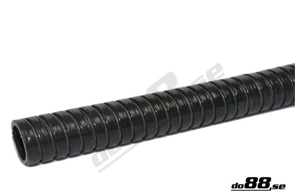 Silikonslang svart flexibel 1,375’’ (35 mm) med invävd stålspiral som ger hög flexibilitet och tålighet mot tryck.