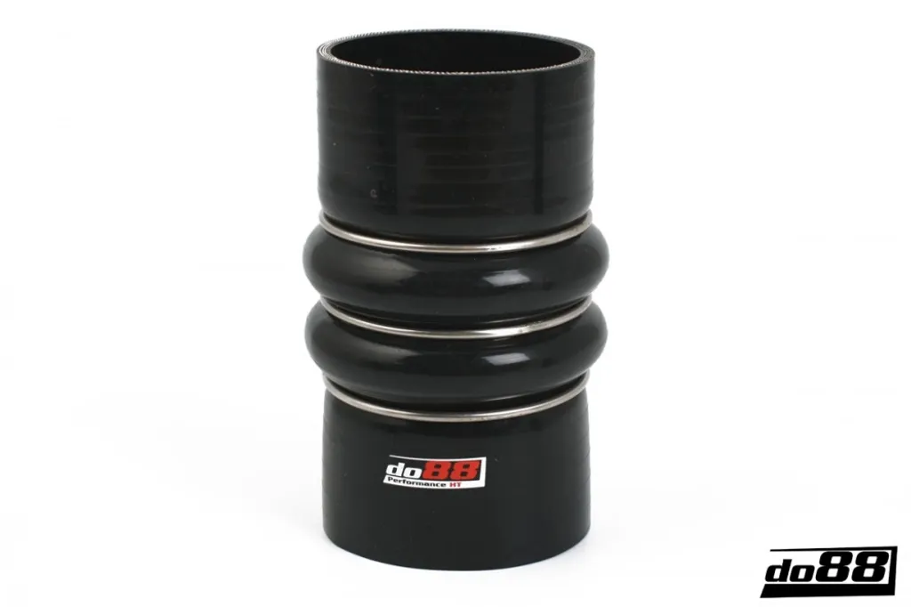 Silikonslang Svart Flexkoppling 2-Steg 3,125" (80mm) är en högflexibel silikonslang med dubbla flexzoner som klarar att böjas, flexa och absorbera vibrationer utan att tappa form eller täthet. Den är tillverkad av högkvalitativt silikon med tre lager Aramid-armering, vilket ger maximal hållbarhet och motståndskraft mot höga tryck och temperaturer över lång tid.