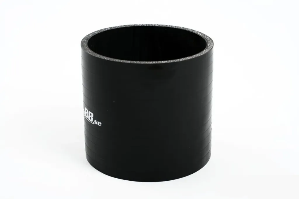 Silikonslang Svart Koppling 4,5" (114mm) är en rak 10 cm lång silikonslang tillverkad i högkvalitativt silikongummi med fyrskikts polyesterarmering. Slangen är framtagen för att klara höga tryck och temperaturer i både tryck- och sugapplikationer, exempelvis mellan turbo, intercooler och insug.