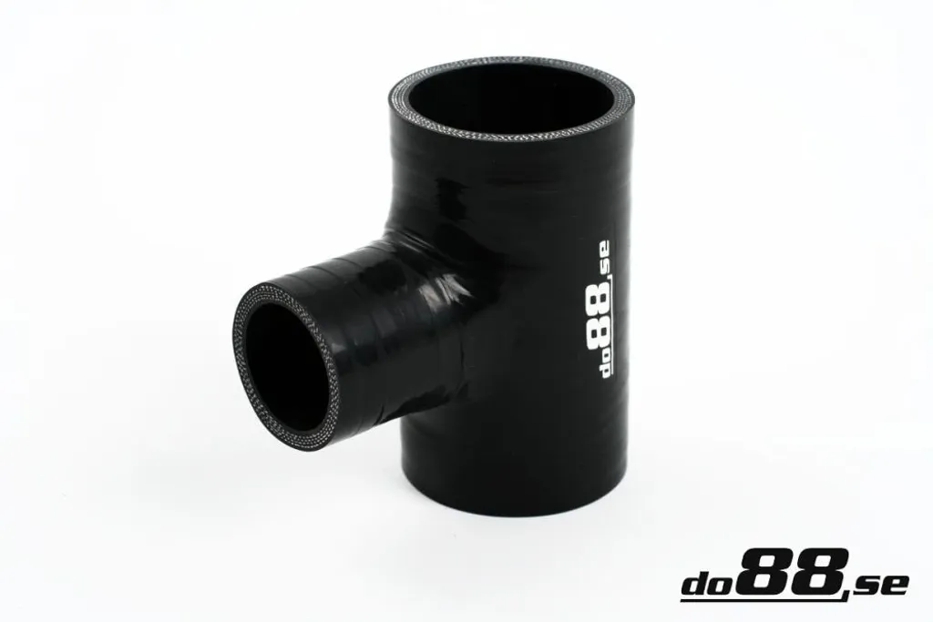 T-koppling i svart armerad silikon som används för att ansluta ett extra grenrör eller uttag i tryck- och sugapplikationer. Lämplig för system som turbo till intercooler, insug eller kylvätskekretsar där extra anslutningar behövs.