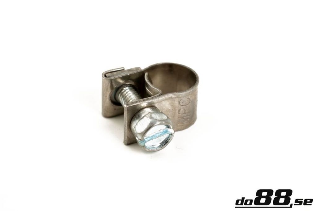 Kompakt slangklämma i rostfritt stål (W4) med bredd 9 mm. Denna högkvalitativa klämma är utformad med uppböjda kanter för att skydda slangen mot brottanvisningar och ge en jämn, säker tätning utan att skada materialet.