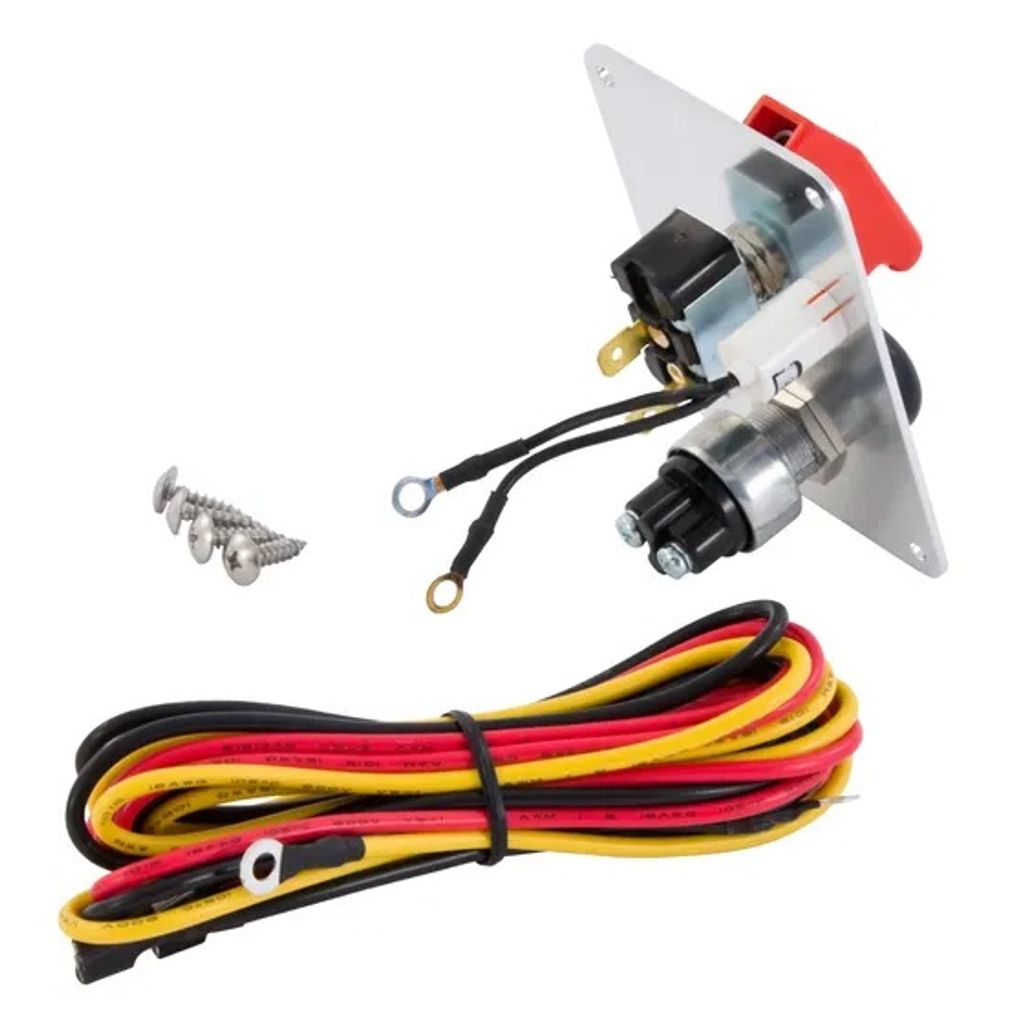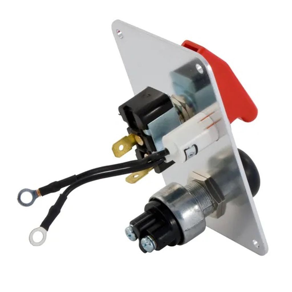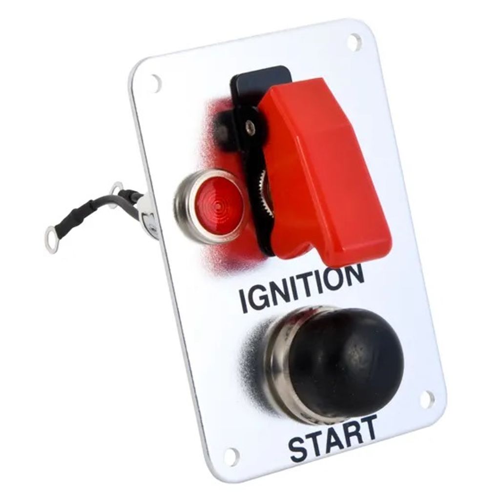 - Komponenter: Startknapp, vippströmbrytare med lock, röd varningslampa (12V)