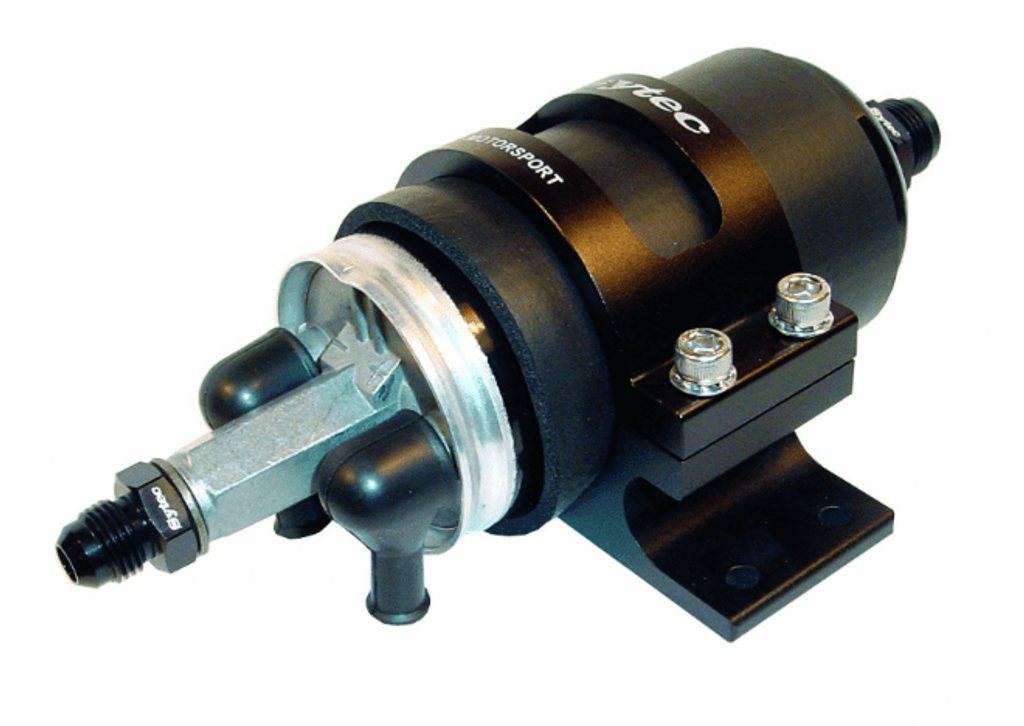 Professionell montering för bränslepumpar och filter – utvecklad för säkerhet och prestanda i racingmiljöer. Detta Sytec fäste är tillverkat i anodiserad lättviktsaluminium och ger en stabil och vibrationsdämpande lösning för montering av högtrycksbränslefilter och runda bränslepumpar, inklusive Bosch 044. Konstruktionen säkerställer tyst och säker drift även under tuffa förhållanden och är optimerad för både racing och gatbruk.