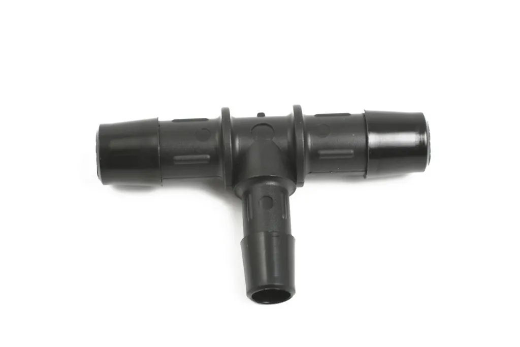 Kopplingen är tillverkad i slitstark plast med låg vikt, god kemikalieresistens och lång livslängd. Den T-formade konstruktionen ger jämnt flöde mellan grenarna och tät anslutning vid montering med slangklämmor. Passar utmärkt för användning inom fordon, industri och specialbyggen där olika slangdimensioner behöver förenas med bibehållen prestanda.