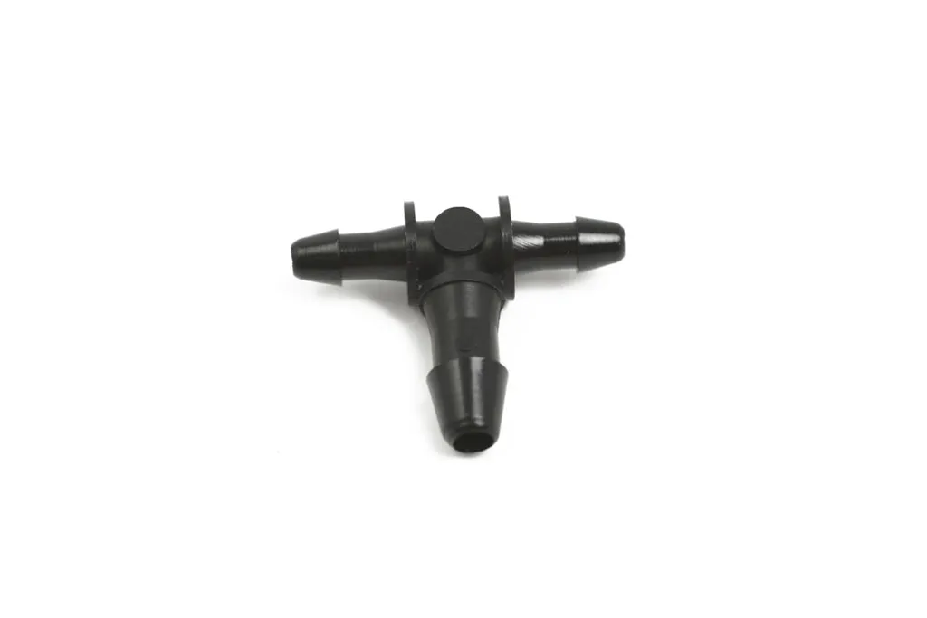 Kopplingen är tillverkad i slitstark plast med låg vikt, god kemikalieresistens och lång livslängd. Den T-formade konstruktionen ger jämnt flöde mellan grenarna och tät anslutning vid montering med presspassning eller små slangklämmor. Lämplig för precisionssystem inom fordon, industri och laboratoriemiljöer.