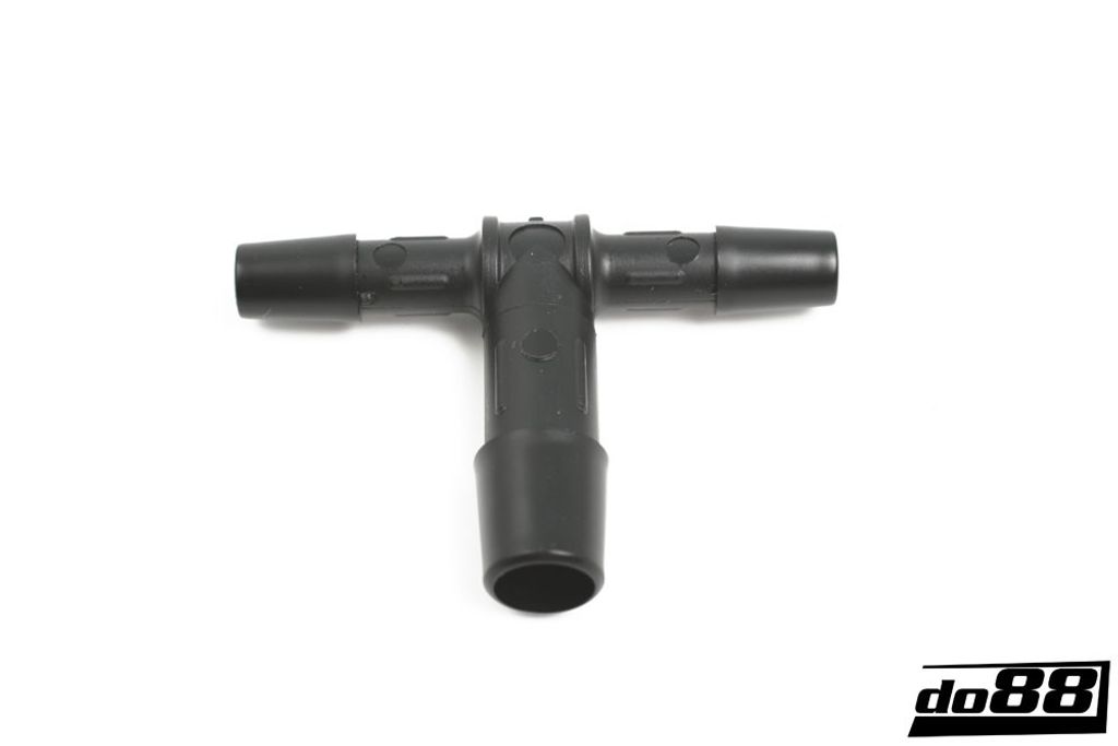 Kopplingen är tillverkad i slitstark plast med låg vikt och hög kemikalieresistens. Den T-formade designen säkerställer jämnt flöde mellan grenarna och ger en tät, vibrationssäker anslutning vid montering med slangklämmor. Perfekt för bränsle-, kyl- och vakuumsystem i fordon och industriella applikationer.