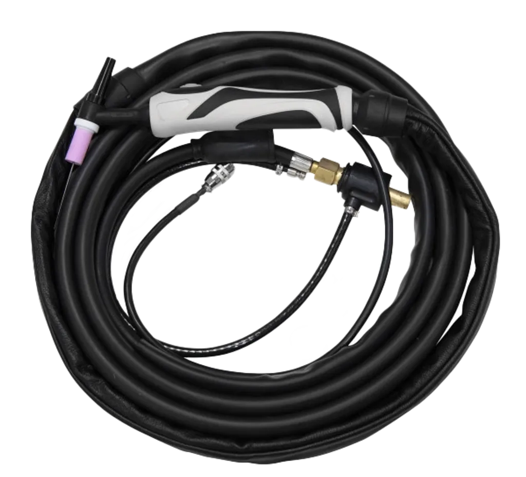 Tigbrännare 17F är en gaskyld TIG-brännare med flexibelt brännarhuvud, framtagen för krävande svetsarbeten. Brännaren finns i både 4 och 8 meters längd och är kompatibel med JASIC:s PRO-serie via 5-stiftskontakt. Den flexibla konstruktionen gör den särskilt användbar vid arbete i trånga utrymmen eller när längre räckvidd krävs.