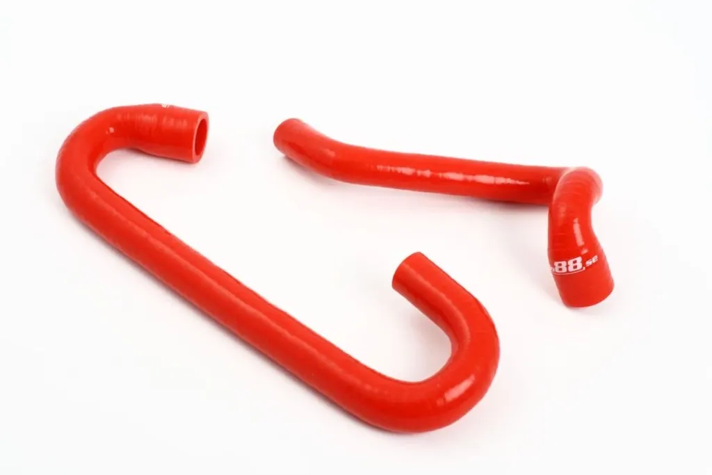 Högkvalitativa silikonslangar som ersätter originalslangarna i bilens tomgångssystem. Ger förbättrad hållbarhet, tätning och ett sportigt rött utseende som lyfter motorrummets helhetsintryck.