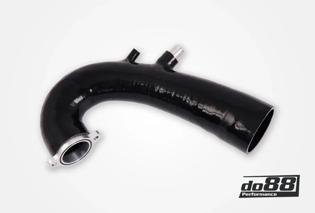 Den flödesoptimerade konstruktionen är framtagen med avancerad 3D-scanning och CAD-design för exakt passform i motorrummet. Med sin släta insida och större diameter jämfört med originalet förbättrar slangen luftflödet med upp till 15 % vid 0,1 bar tryckfall (710 CFM mot originalets 620 CFM). Den robusta silikonuppbyggnaden i flera lager säkerställer hög hållfasthet och värmetålighet även vid hård körning. CNC-bearbetad aluminiumadapter garanterar exakt anslutning mot turbon.