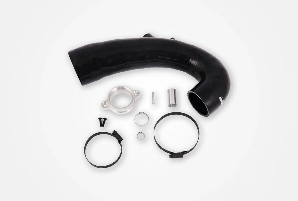 Prestandaoptimerad silikonslang med CNC-bearbetad adapter som ersätter originalets inloppsslang till turbons inlopp på Toyota Yaris GR. Ger ökat luftflöde, minskat undertryck och effektivare laddtrycksrespons för högre motoreffekt och bättre gasrespons.