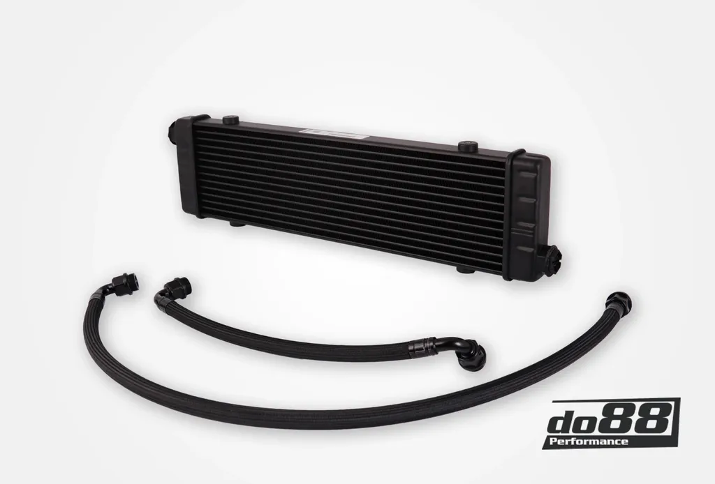 Denna racinganpassade oljekylare är konstruerad för att monteras mellan intercooler och vattenkylare, och kan även installeras tillsammans med originalkylare. Kylaren har en stor kylarea och högflödeskonstruktion som säkerställer stabil oljetemperatur även under krävande körning. Genomsnittlig temperatursänkning vid hård belastning är cirka 20 °C, vilket skyddar motorns livslängd och bibehåller prestanda.