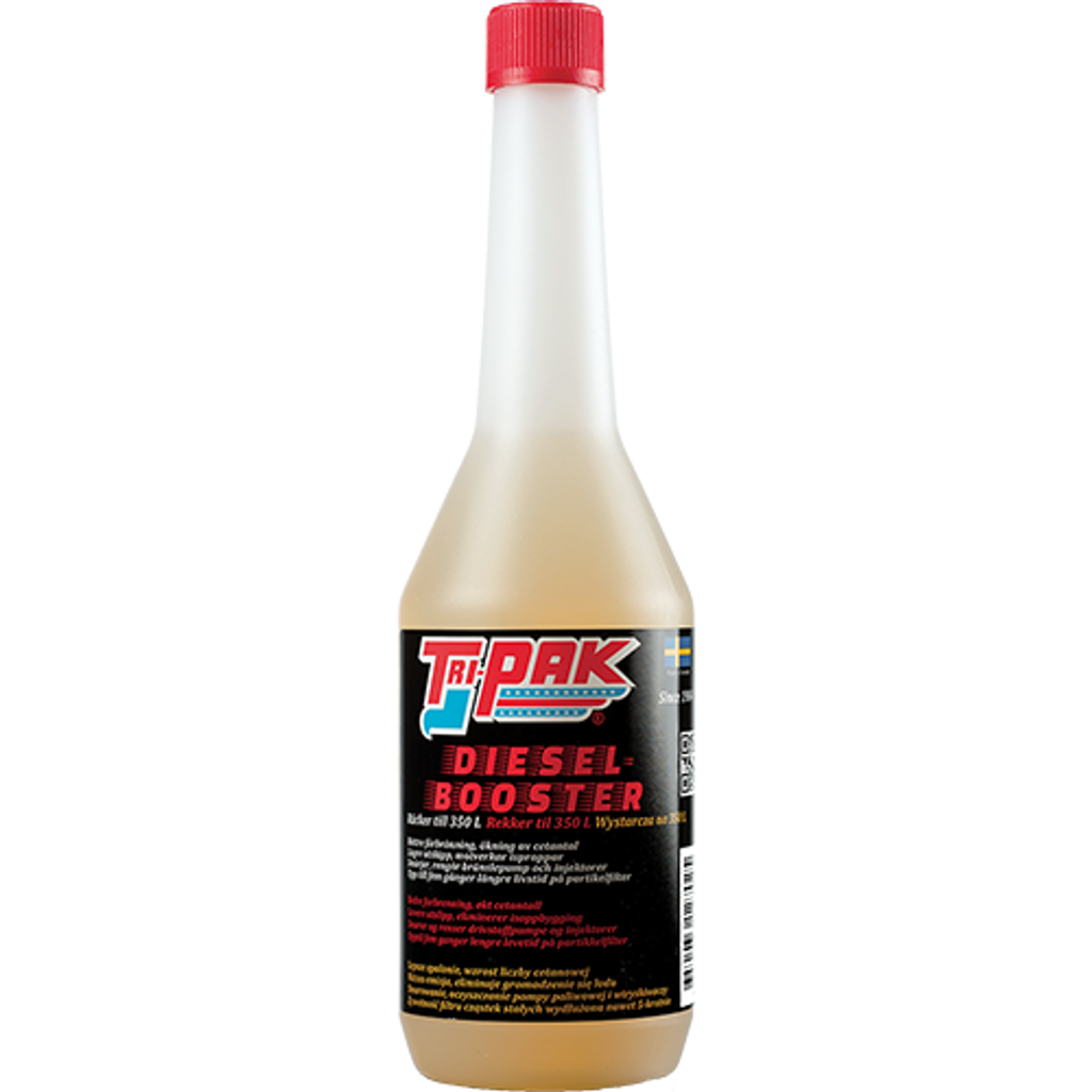 TRI-PAK® Diesel Booster är en premium bränsletillsats för alla dieselmotorer – utvecklad i Sverige för ökad motoreffektivitet, smörjning och bränsleekonomi.