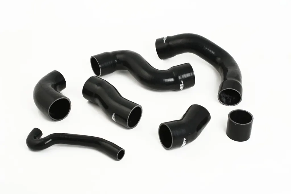 Slangarna är tillverkade i förstklassigt silikon med tre till fem lager textilarmering, beroende på innerdiameter. Den robusta konstruktionen tål höga laddtryck och temperaturer utan att spricka eller deformeras. Originalslangar i gummi åldras snabbt och riskerar att läcka – detta silikonslangkit eliminerar problemet och ger ett uppgraderat luftflöde. För bästa resultat rekommenderas montering med matchande slangklämmor, tillgängliga under fliken Tillbehör.