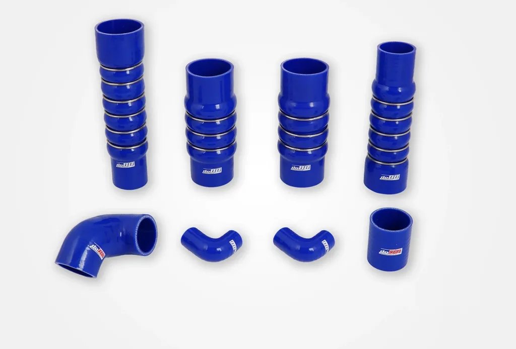 Premium silikonslangkit som ersätter originalets turbo- och intercoolerslangar på Audi RS4 2.7 Bi Turbo. Ger förbättrad hållbarhet, hög trycktålighet och ett sportigt blått utseende i motorrummet.