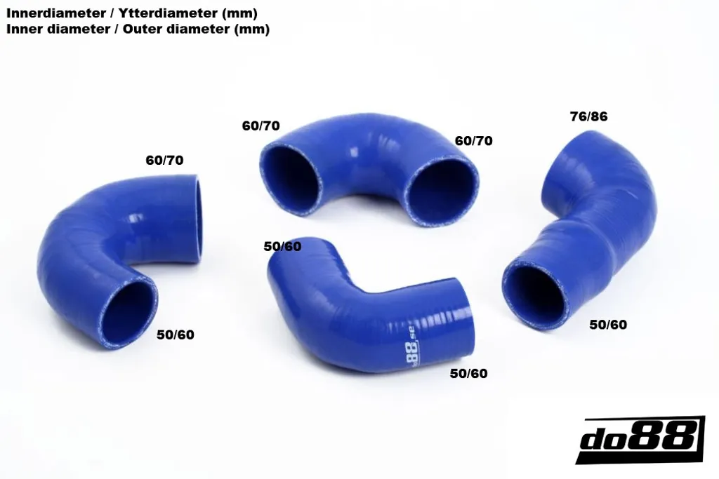 Dessa slangar är tillverkade i högkvalitativt silikon med tre till fem lager textilarmering, beroende på slangens innerdiameter. Konstruktionen säkerställer lång livslängd och motståndskraft mot höga tryck och temperaturer, vilket gör dem betydligt mer pålitliga än originalets gummislangar. De spricker inte av uttorkning och bibehåller sin form även vid hård belastning, vilket gör dem perfekta både för originalmotorer och trimmade fordon.
