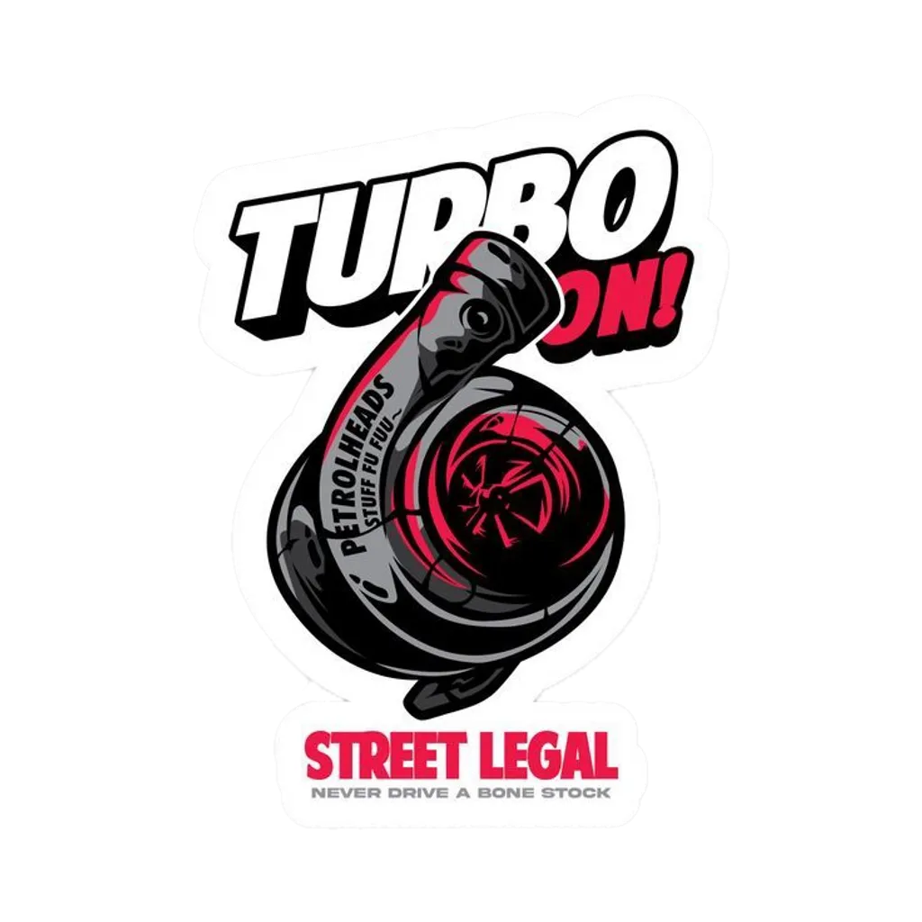 - Text: ”TURBO ON!”, ”PETROLHEADS STUFF” & ”NEVER DRIVE A BONE STOCK”