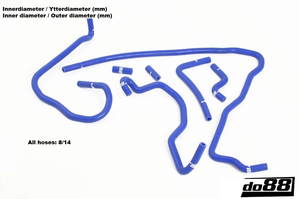 Slangarna är tillverkade av förstklassigt silikon med tre till fem lager armering beroende på innerdiameter. Konstruktionen ger bibehållen form även vid högt undertryck och värmepåverkan. Originalslangar i gummi spricker ofta med tiden på grund av uttorkning – detta silikonslangkit eliminerar problemet och säkerställer långvarig driftsäkerhet. Färgval påverkar inte prestandan, men Svart utförande ger ett diskret och fabriksnära utseende. För optimal installation rekommenderas matchande slangklämmor under fliken Tillbehör.