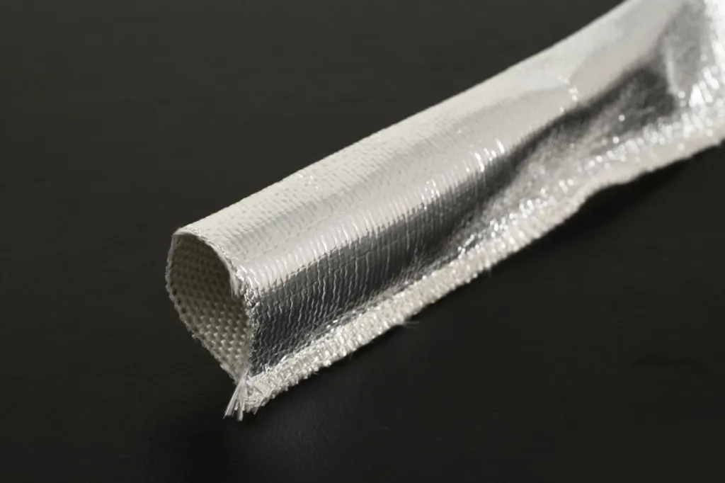 Effektiv värmeskyddshylsa med glasfiberinsida och aluminerad utsida – skyddar slangar och kablar mot strålningsvärme.