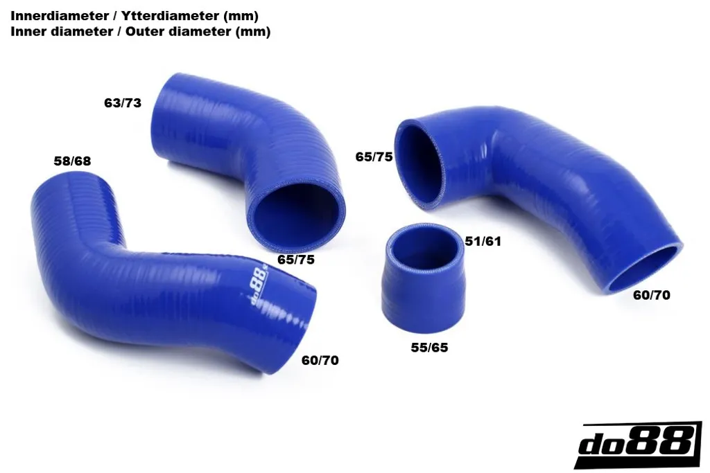 Tryckslangarna är tillverkade i flerskiktsarmerat silikon som tål höga tryck och temperaturer under lång tid. Originalets gummislangar torkar och spricker med tiden – detta kit erbjuder en pålitlig, långlivad och estetiskt tilltalande lösning. Blå utförande med tre till fem lager armering beroende på slangens innerdiameter. Monteras direkt utan modifiering.