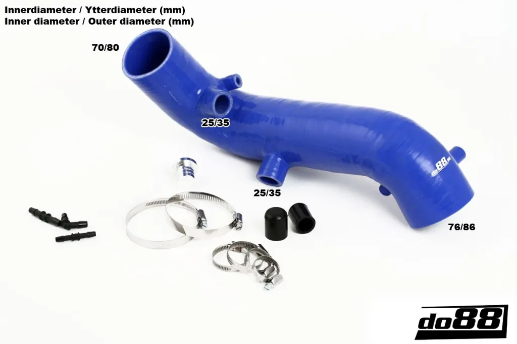 - Anslutning mot turbo: 70 mm (passar även 60 mm med åtdragen klämma)