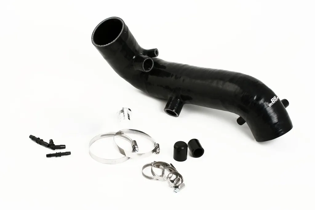 Denna inloppsslang har en konstant innerdiameter på 76 mm (3"), vilket är avsevärt grövre än original. Konstruktionen ger ett markant förbättrat luftflöde till turbon och minskar restriktioner i insugssystemet. Slangen har 76 mm anslutning mot luftmassemätaren och är anpassad för 70 mm anslutning mot turbon. Den kan även monteras på originalturbo med 60 mm anslutning genom att dra åt slangklämman, vilket ger tät och säker montering. Slangen är förstärkt med stålwire för att motstå hoptryckning vid höga undertryck och är utrustad med uttag (25 mm) för dumpventilens återcirkulering. Plugg medföljer om detta inte används.