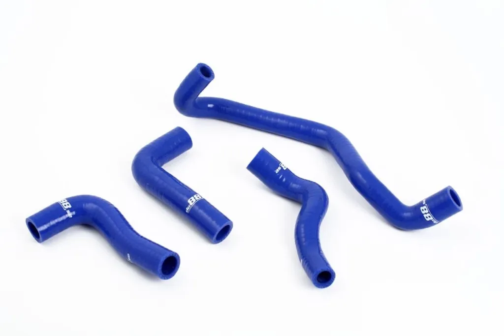 Slangarna är tillverkade i flerskiktsarmerat silikon som tål höga tryck och temperaturer under lång tid. Originalets gummislangar torkar och spricker ofta med åldern – detta slangkit erbjuder en pålitlig och långlivad lösning som samtidigt ger ett visuellt lyft. Blått utförande med tre till fem lager armering beroende på innerdiameter. Monteras direkt utan modifiering.