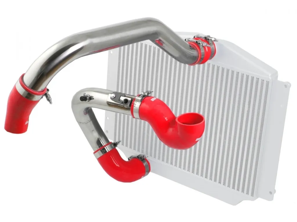 Detta kompletta tryckrörspaket ersätter originalrören och ger upp till 21 % högre luftflöde – verifierat i SuperFlow SF-1020-flödesbänk. Rördragningen är dessutom 60 cm kortare än original, vilket förbättrar responsen och minskar turbolagget. Tryckrören är tillverkade av 2,5" rostfritt stål och kompletteras med högkvalitativa röda silikonslangar i 4-lagers aramidförstärkt konstruktion som tål både högt tryck och temperatur.