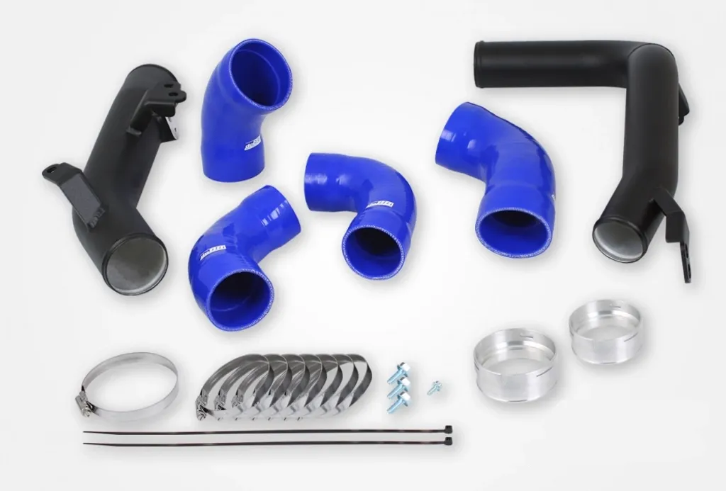Detta tryckrörspaket är utvecklat för att ge markant förbättrat luftflöde jämfört med original – hela 53 % högre vid 0,1 bar tryckfall, verifierat i flödesbänk. Kombinationen av extruderade aluminiumrör och armerade silikonslangar säkerställer optimal prestanda och lång livslängd under höga temperaturer och tryck.
